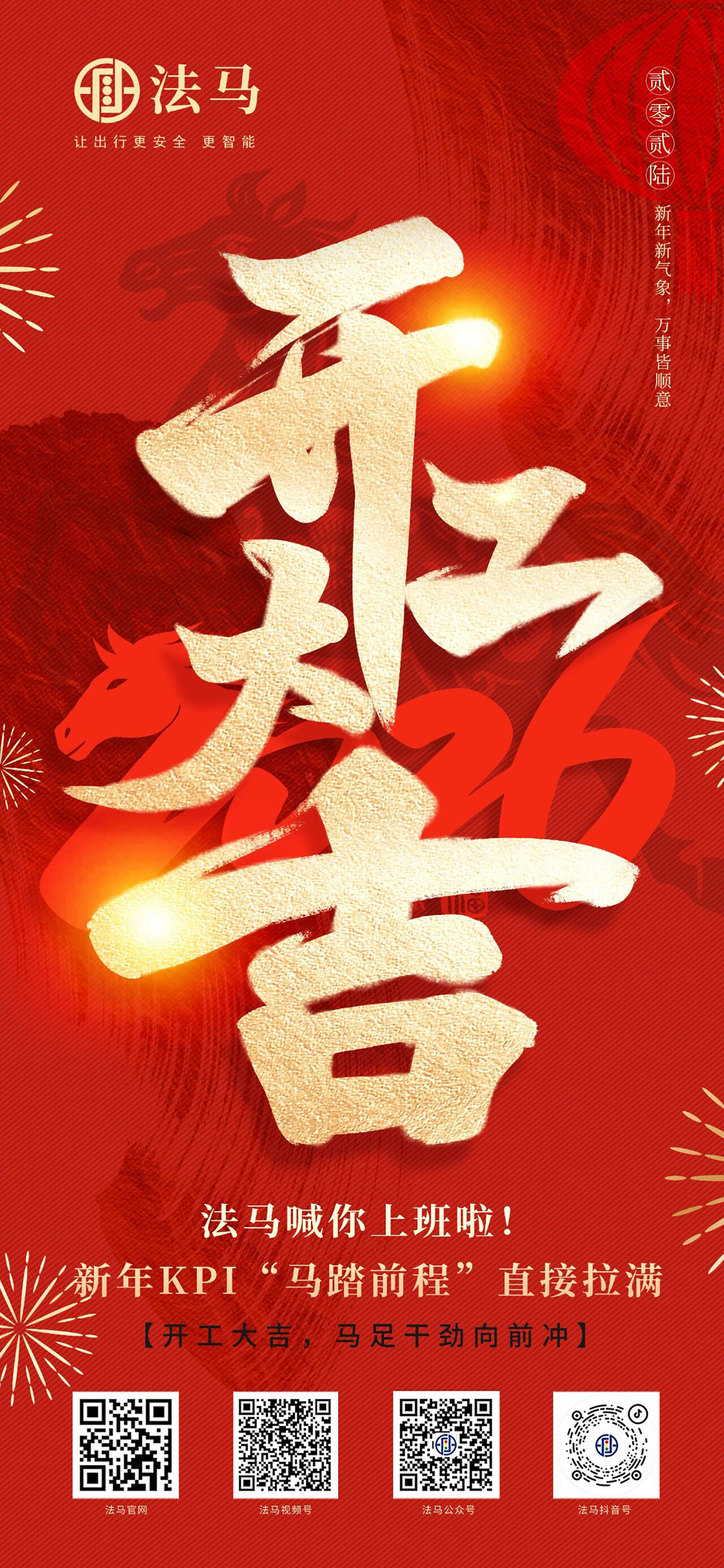2月26日,法馬揚(yáng)州總部與深圳分公司同步開啟“開工模式”,各辦事處也通過線上紅包形式參與聯(lián)動。這場熱鬧非凡、暖意滿滿的開工儀式,正式拉開了2026丙午馬年的奮斗序幕。全體法馬人帶著好運(yùn)、揣著紅包、燃起斗志,共赴新征程!